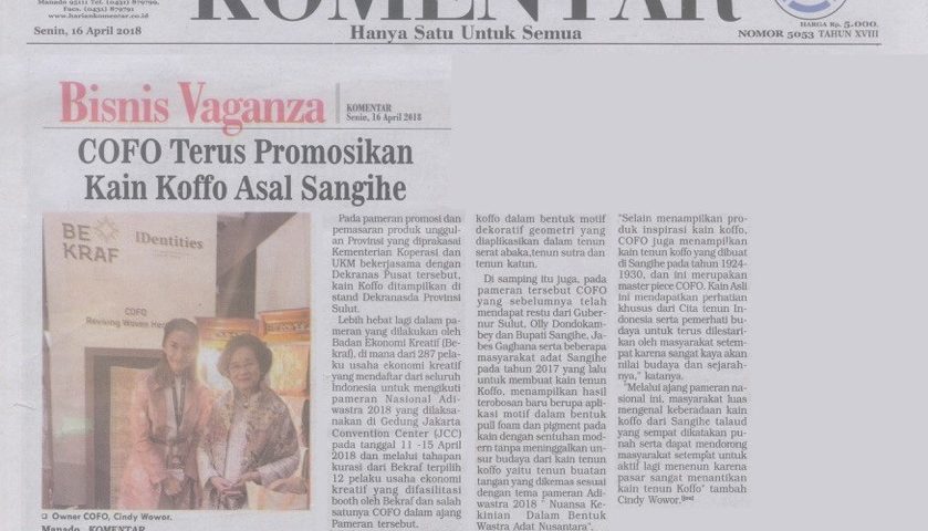 COFO sebagai produk yang telah terkurasi oleh Badan Ekonomi Kreatif berhasil mendapatkan restu dari Gubernur Sulawesi Utara, Olly Dondokambey dan Bupati Sangihe, Jabes Gaghana, dalam misinya untuk menghidupkan kembali kain tenun tradisional Koffo yang sempat hampir punah dan mendorong masyarakat setempat asalnya, Sangihe Talaud, untuk kembali aktif menenun dan menghasilkan kain Koffo.