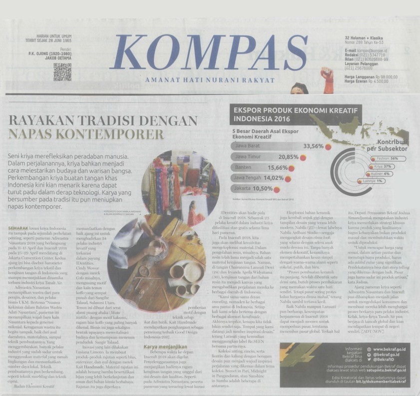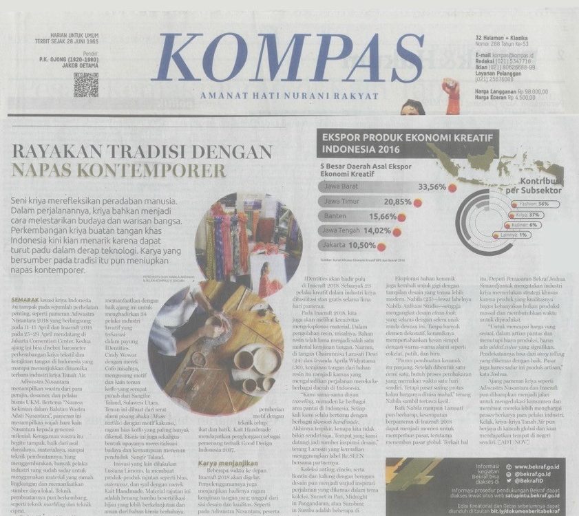 Kompas – Semarak kreasi kriya Indonesia tampak pada perhelatan penting, pameran Adiwastra Nusantara 2018 yang berlangsung pada 11 – 15 April di Jakarta Convention Center.  Ajang […]